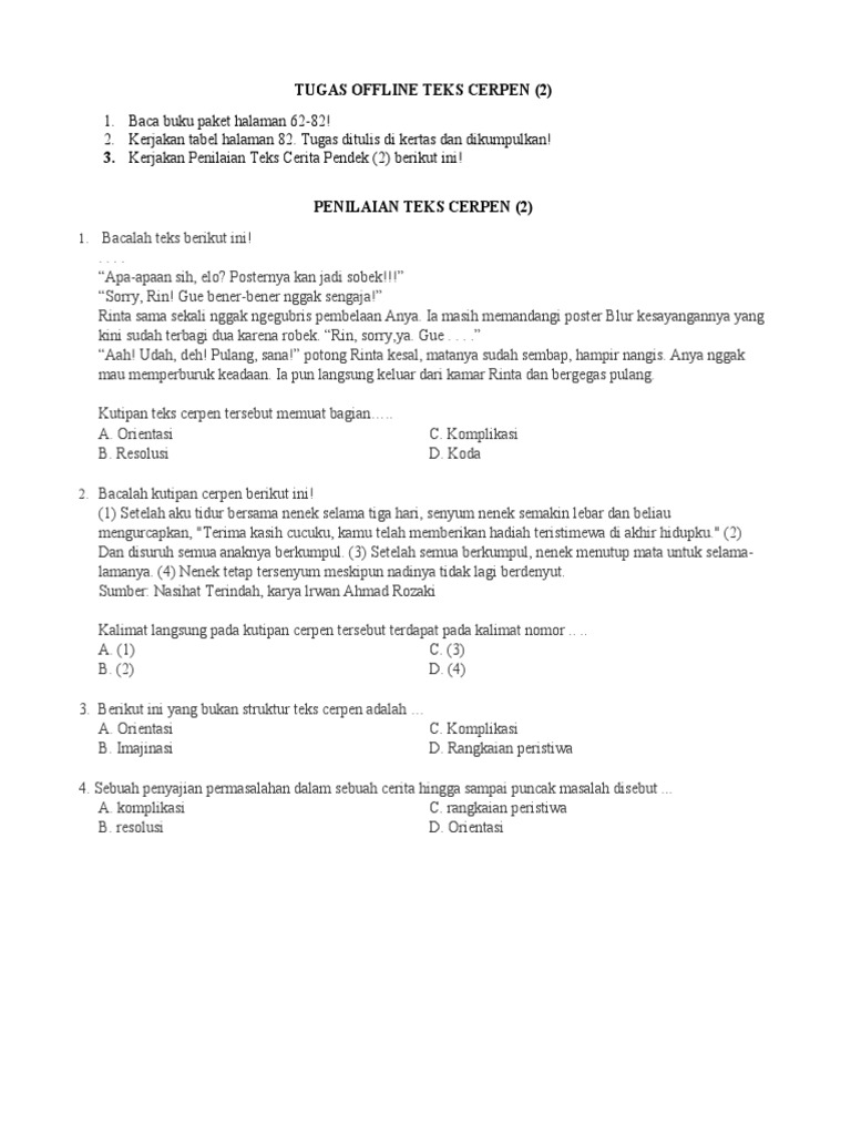 Bahasa Indonesia Teks Cerpen Other Quiz Quizizz from quizizz.com We did not find results for: Maybe you would like to learn more about one of these? Kutipan teks cerpen tersebut memuat bagian. Check spelling or type a new query.
